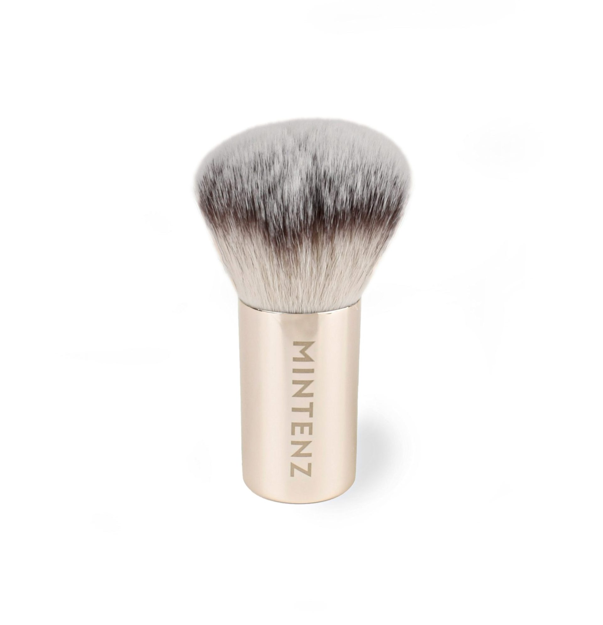 Een kabuki kwast gemaakt van een grote hoeveelheid zachte synthetische haren dicht op elkaar voor het mooi egaal en gelijkmatig aanbrengen van de minerale foundation.